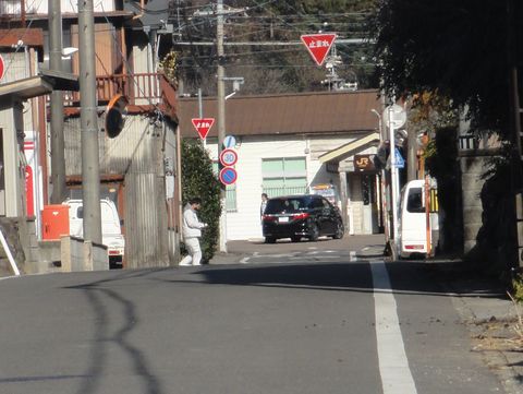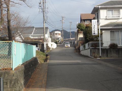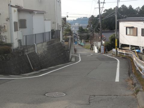 右手は段丘で低い所に住宅地