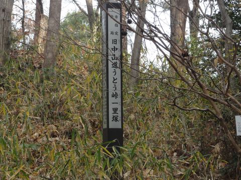 すぐにうとう峠一里塚の標識わずかに形を残すようだが。 |
