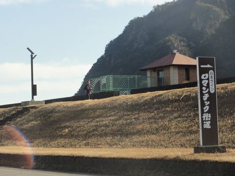 緩やかな坂道で登る少しづつは登ってゆく道。 |