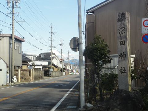 深田神社の手前で堤防上へ
