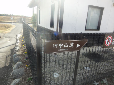 跨線橋から降りた右手に一里塚があるはず。 |