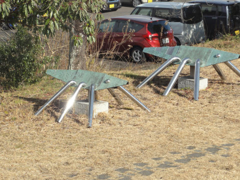 渡し場公園ベンチが船形になっている。 |