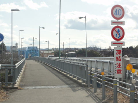 側道橋は昔はなかったよう狭い車道だけの橋を渡るのは苦難。 |