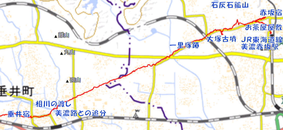 垂井宿へ右手に見える国道を一度アンダーパスで越えて南側へ。 |