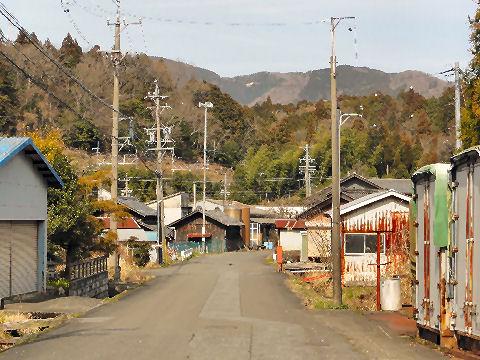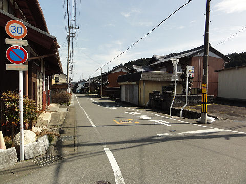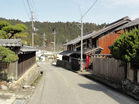 旧街道特有の緩いカーブが続く道。 |