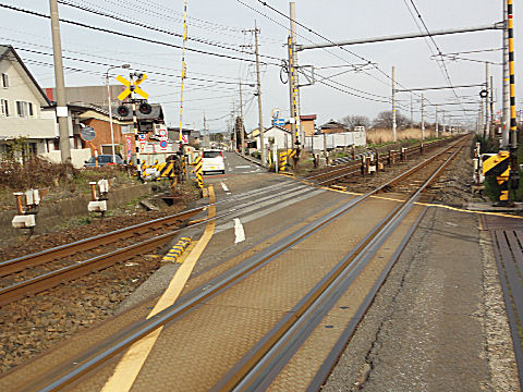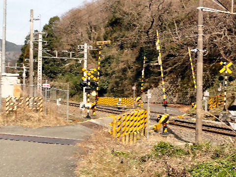 国道を渡る踏切の先は国道だがそのまま向かい側へ渡って今須へ入る。 |