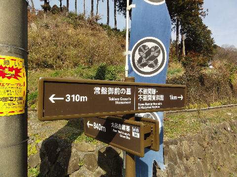 下の集落の左手奥に常磐御前の墓鎌倉を目指すもここで賊に襲われて落命した常磐御前の墓、小さい。 |