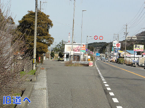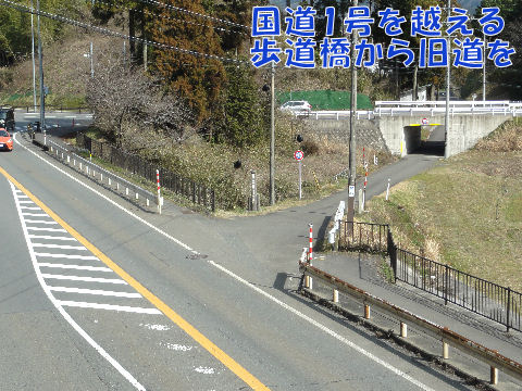 旧道は国道を越えて南へ国道に掛かる歩道橋で反対側の旧道へ進む。 |