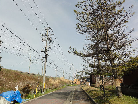 左手は東海道線の築堤が続く右側は松並木、最近植えたもののよう。 |