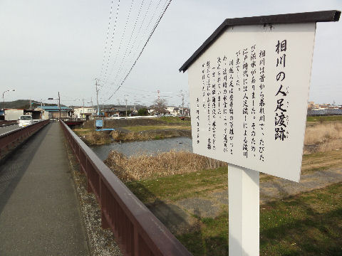 左へ曲がり川を越えるここも人足による渡し場だったよう。 |