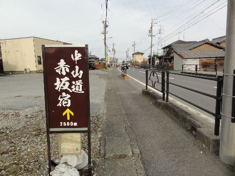 赤坂宿まで2.5kmの看板でもこの先に再び2.5kmの標識が出てきた、一体どこまでが赤坂宿? |