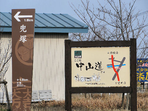 新しく設置の看板類このあたりは青墓宿、次のポイントは鎧塚。 |
