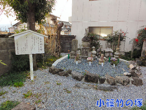 小篠竹の塚青墓にむかし照手姫という遊女あり。この墓なりとぞ。照手姫は東海道藤沢にも出せり。その頃両人ありし候や詳ならず。 (木曽路名所図会より) 一夜見し 人の情に たちかえる 心に残る 青墓の里 慈円 |