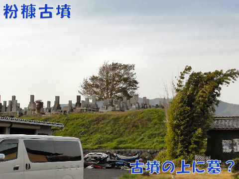古墳の様に見えるが何故か上には墓が多数。 |