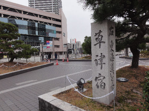 朝11時40分に草津駅をスタート岸和田城を見てきたので出発は遅めになった、駅前の草津宿の石柱を見るのは もう何度めか。まずはマンホールカードを貰いに本陣周辺へ向かう。 |