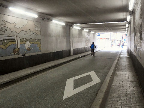 地下道で東海道線の反対側へあれ、何か違うと感じた。もっと天井が低いはず、間違えた?。 |