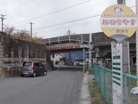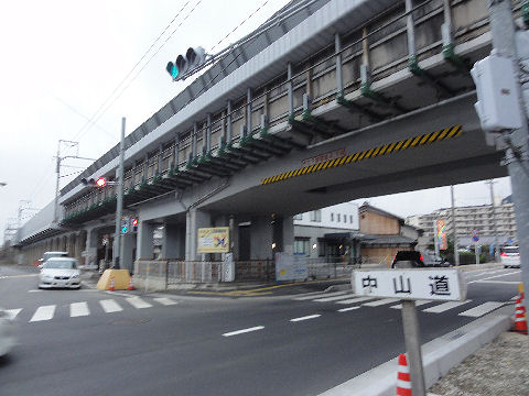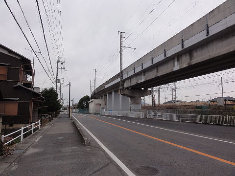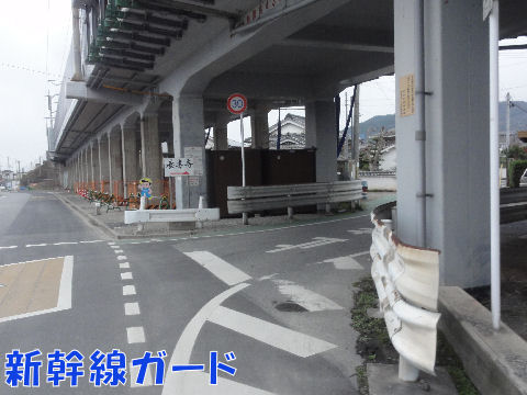 駅方向から見た新幹線ガード真っすぐ延びる道の先が野洲駅。 |