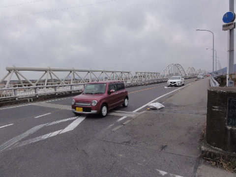 野洲川を越える歩道は右側にしかないので事前調査が大事、直前では渡れない。 |