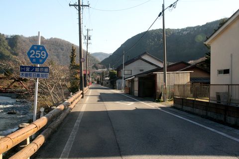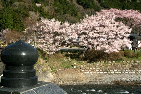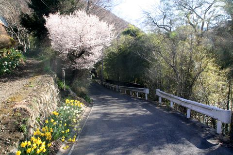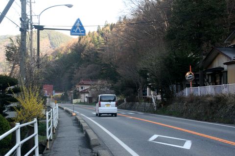 川添いには綺麗な桜義仲館へまわるルートは前回見たので、今回は橋の手前を右折し北上。。 |