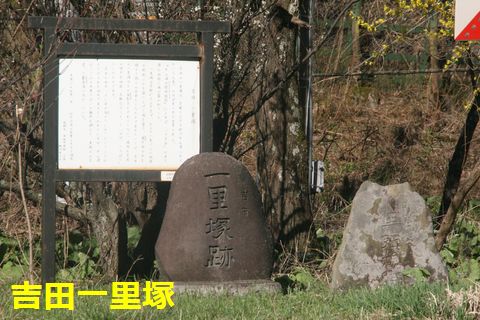 吉田の一里塚この辺りは白線歩道で歩きにくいので右側の土道へ。 |