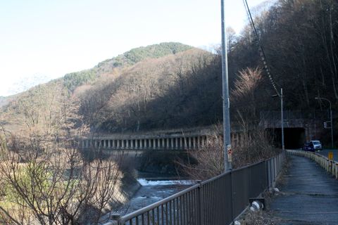 吉田の洞門が見えてきたここから左折して川の反対側を進むことも可(前回のルート)。 |