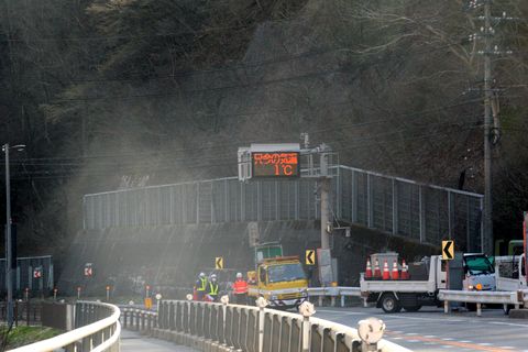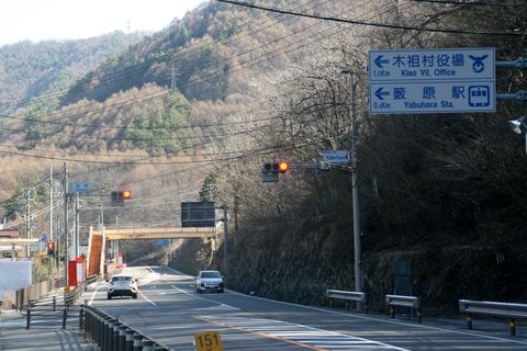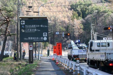 この先はバイパス工事中この先の区間は土砂崩れ多発区間、右手の山をトンネルで抜けるバイパスの工事中。 |