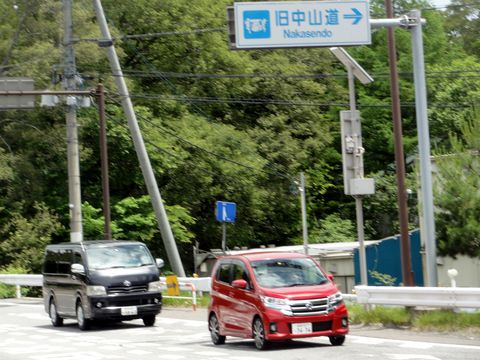 戻って歩道を横断するすぐ右手に旧中山道の標識があるが入れない。 |