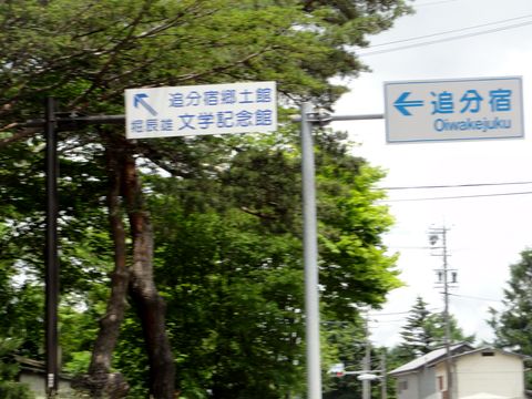 新しい案内標識最近整備されたよう、隣の宿場を示すが距離は無い。 |