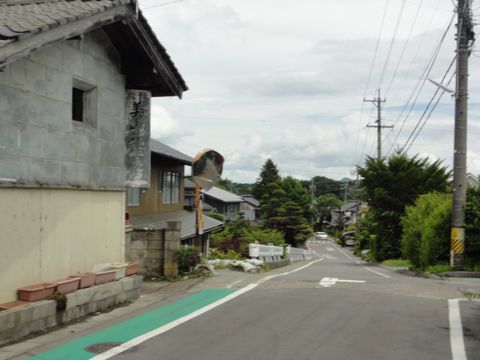 地下道出口から中山道へ真っすぐ進む道が旧中山道の道、御代田駅は標高820mなので登りの道が続く。 |