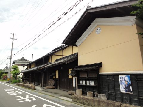 立派な商家も残る土蔵のしたは復元された高札場。 |