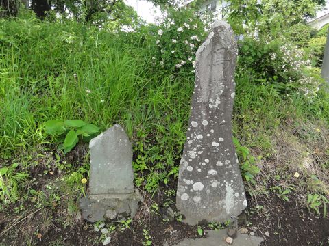 追分の一里塚の石碑がある墓地の一角にぽつんとある石碑。 |
