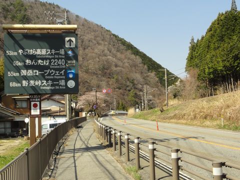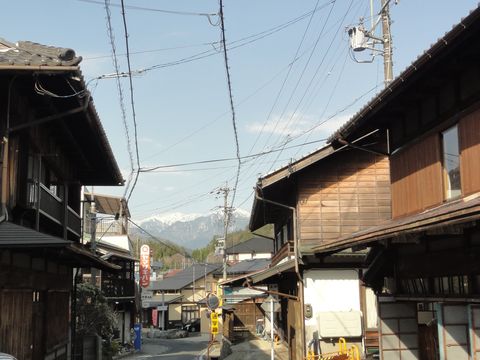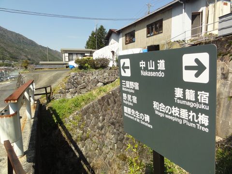 妻籠から来た道を振り返る南木曽町の売りは妻籠なので力が入っているが、三留野宿方向は? |