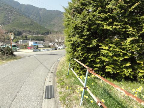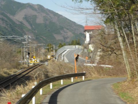 民家が何軒か出てくる右の高い所を中央線が通っている。 |