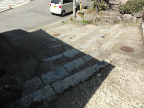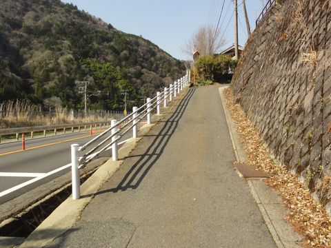 歩道のある反対側へ横断歩道はない、ガードレールの隙間から渡る。 |