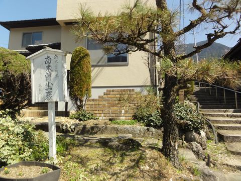 階段下には南木曽小の看板この階段は南木曽小への学童の通学路になっているよう。 |
