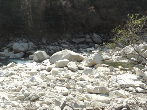木曽川は水量少ない水力発電所のトンネルを流れる水量がほとんどで大雨でもない限り水はごく少ない。 |