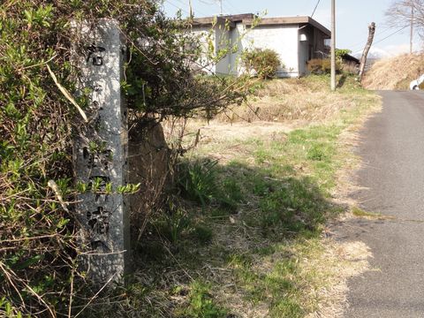 線路の向こうに金知屋の一里塚があるはず線路を横断できない(踏切が無い)ので向こう側へは行けない。 |