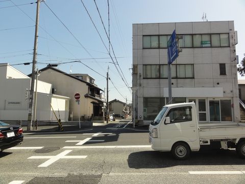 晴嵐交差点に日本電気硝子大きな工場の北端の建物。 |