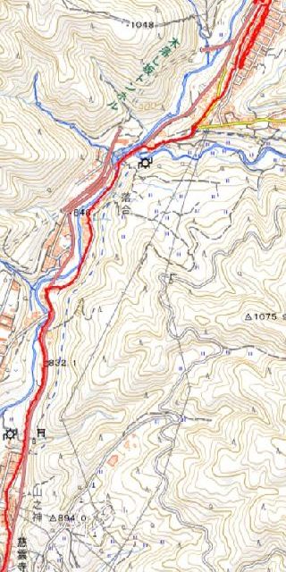 右の旧道を進む国道は長い橋で進むが旧道はくねくねと曲がって進んでいく。パーライトの工場やペット霊園がある。 |