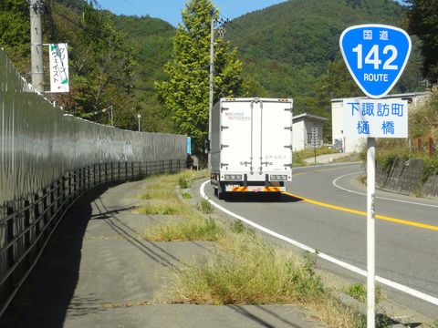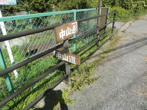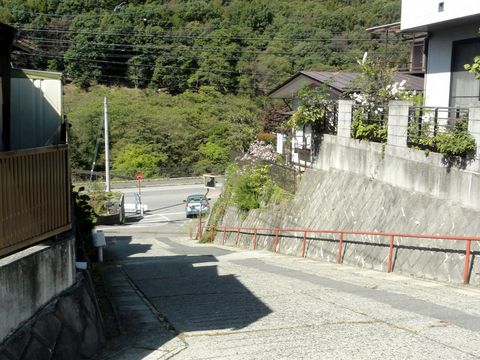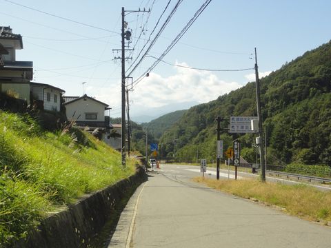 左の旧道へ入る一度下がってまた上がり国道へ合流する。 |
