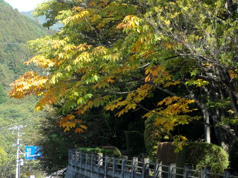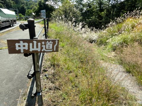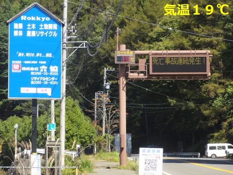 気温19℃ここを左へ入るのが一里塚への道。 |