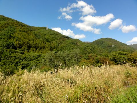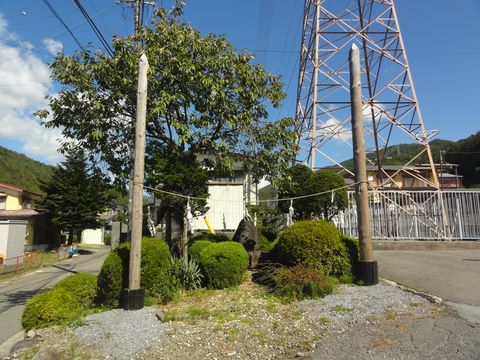 道の真ん中に道祖神ここで右手へ進むのが正しいが左へ行ってしまった。送電鉄塔に騙された? |