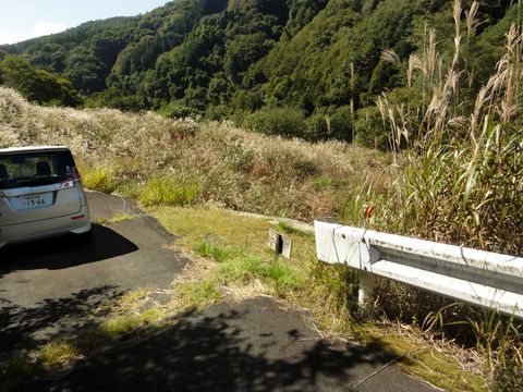 すぐに折り返し草道へ停めてある車はすぐ下の畑で作業していた人のもの。 |