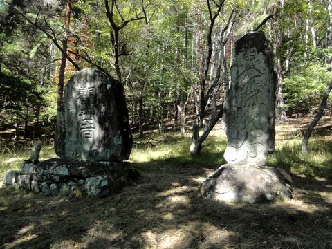 浪人塚の説明板江戸末期に水戸藩を脱藩し急進派が京都へ向かいここで諏訪藩などと戦い、14-5人が死亡した。 |
