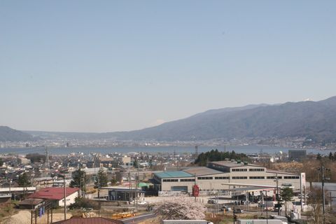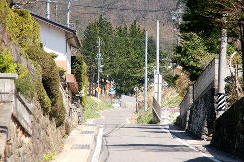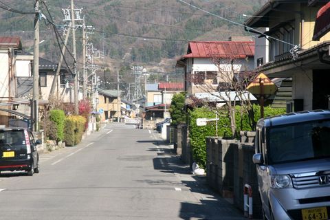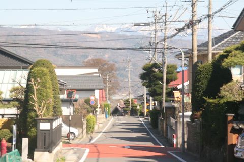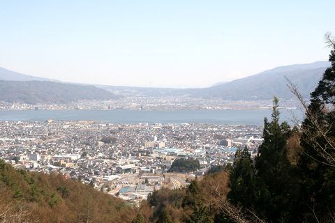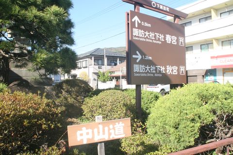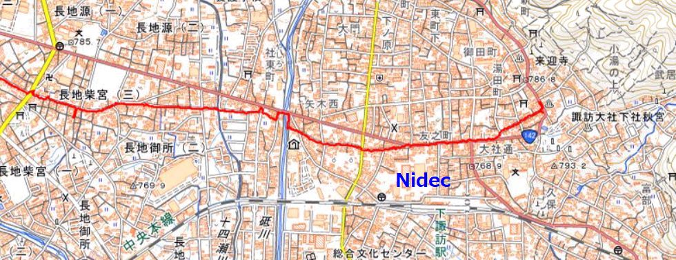 市街地へ下ってゆく塩尻峠から下諏訪まですっと下り坂の道。 |