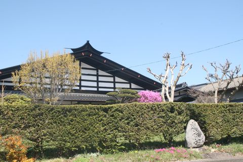 立派な家屋根の飾りも独特、雀踊りという名前。 |