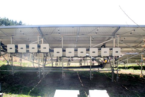 山中の太陽光発電設備どこにも増えている設備、ここはファーウェイの変換機器だった。 |