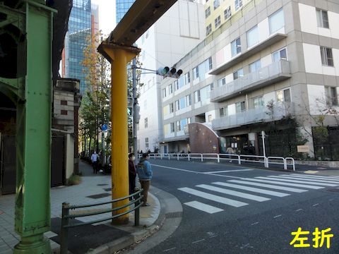 高架の下を進む古い高架で薄暗いまま、右が神田駅。 |