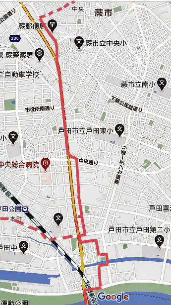 まもなく戸田市へ入るすぐに戸田市に入る、蕨市は小さな市。 |