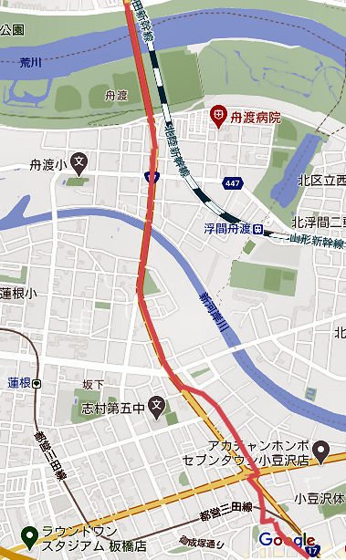 志村橋を越える下の川は新河岸川。 |